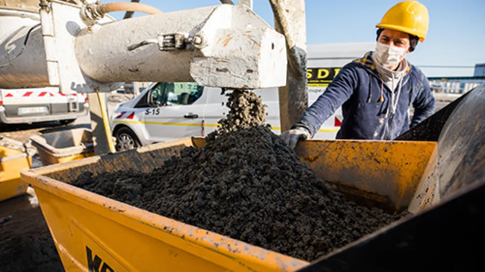 Directement livré sur le chantier, en silo, le mortier de chape est gâché à la demande dans un malaxeur puis transporté dans les bâtiments à l’aide d’un dumper sur chenille. La simplicité du flux logistique est un atout pour les produits en silos Cantillana.