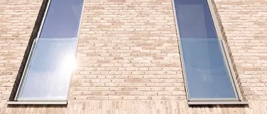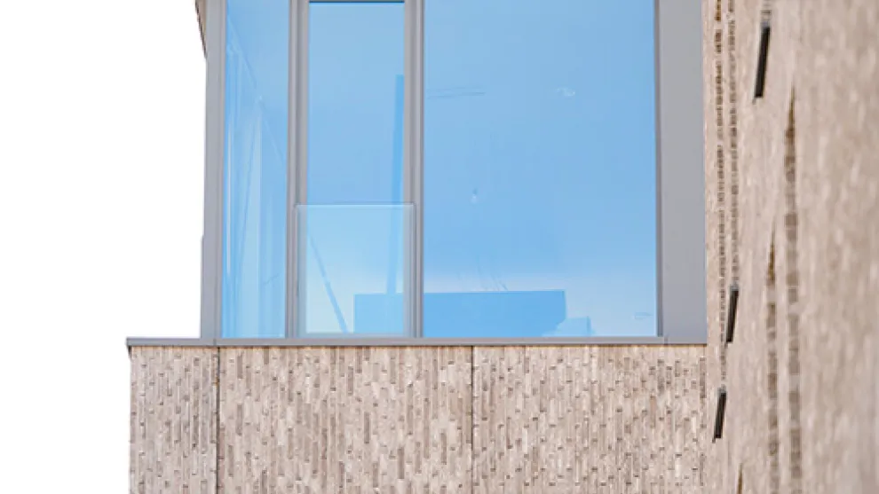 La façade a été maçonnée et jointoyée avec le Mur 8 DSM teinté en couleur 3002 extra blanc pour une épaisseur de joint de 10 mm en combinaison avec la brique Zola « blanc gris » de Nelissen.