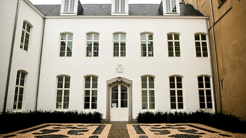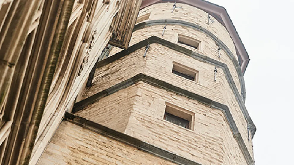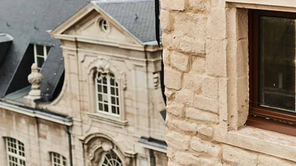 Pour respecter le style traditionnel tout en apportant une touche de modernité, la société de construction Denys a utilisé la peinture à base de chaux Badigeon beige sur les murs maçonnés d’Handelsbeurs, en particulier sur la tour emblématique.
