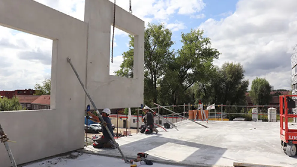 Le nouveau bâtiment sera construit rapidement à l'aide d'éléments en béton préfabriqués.