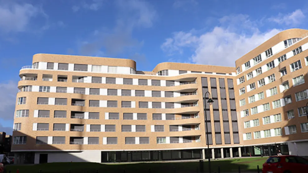 De lichtgele gevelsteen werd gemetseld en gevoegd met onze lichtgrijze doorstrijkmortel Mur 8 DSM 3011. Hippodrome werd opgeleverd in 2020.